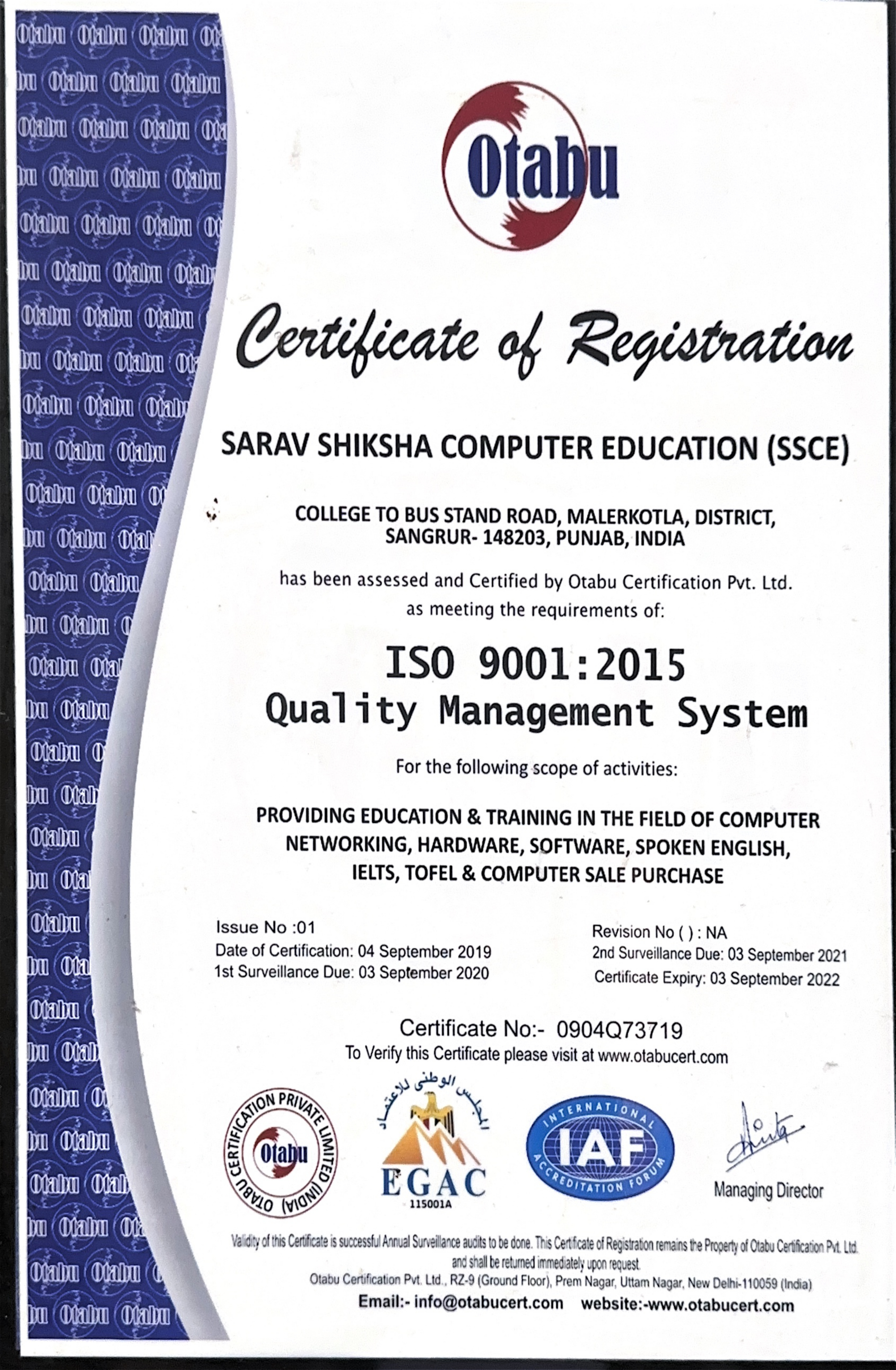 Certification done by EGAC